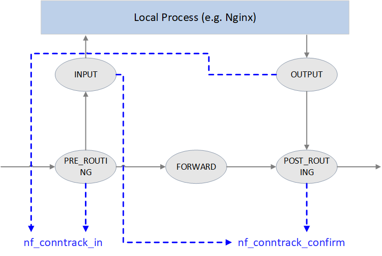- 根据这些信息建立起这台机器上的连接信息数据库(conntrack table)。