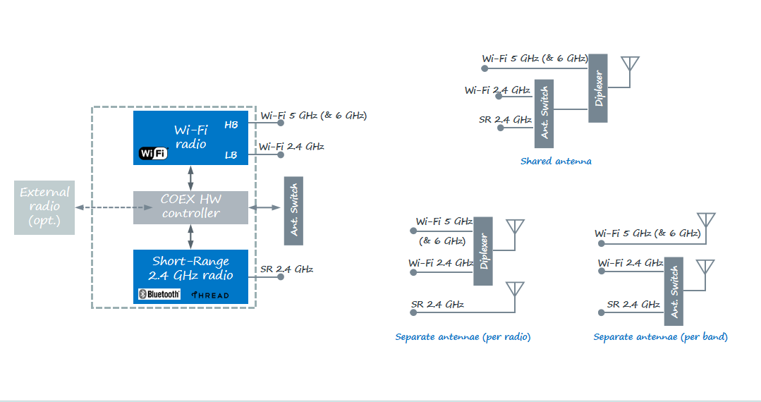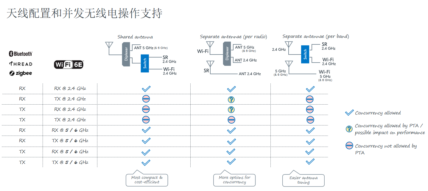 2:独立的天线配置(separate antennae)实现效率最大化,"per radio"最大限度地提高并发性"per band”简化天线设计、调谐和效率