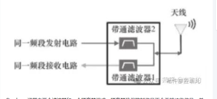 Duplexer是一种用于同一频段上进行双向通信的射频器件,主要应用于FDD ( 频分双工 )制式的通路,其作用是将发射和接收信号相隔离,允许发射机和接收机共用一根天线,但不会相互干扰。一般在手机蜂窝系统中使用较多,Duplexer通常由两个滤波器和一个隔离器组成。隔离器确保发射信号不会干扰接收信号,并且发射信号和接收信号可以同时通过同一根天线