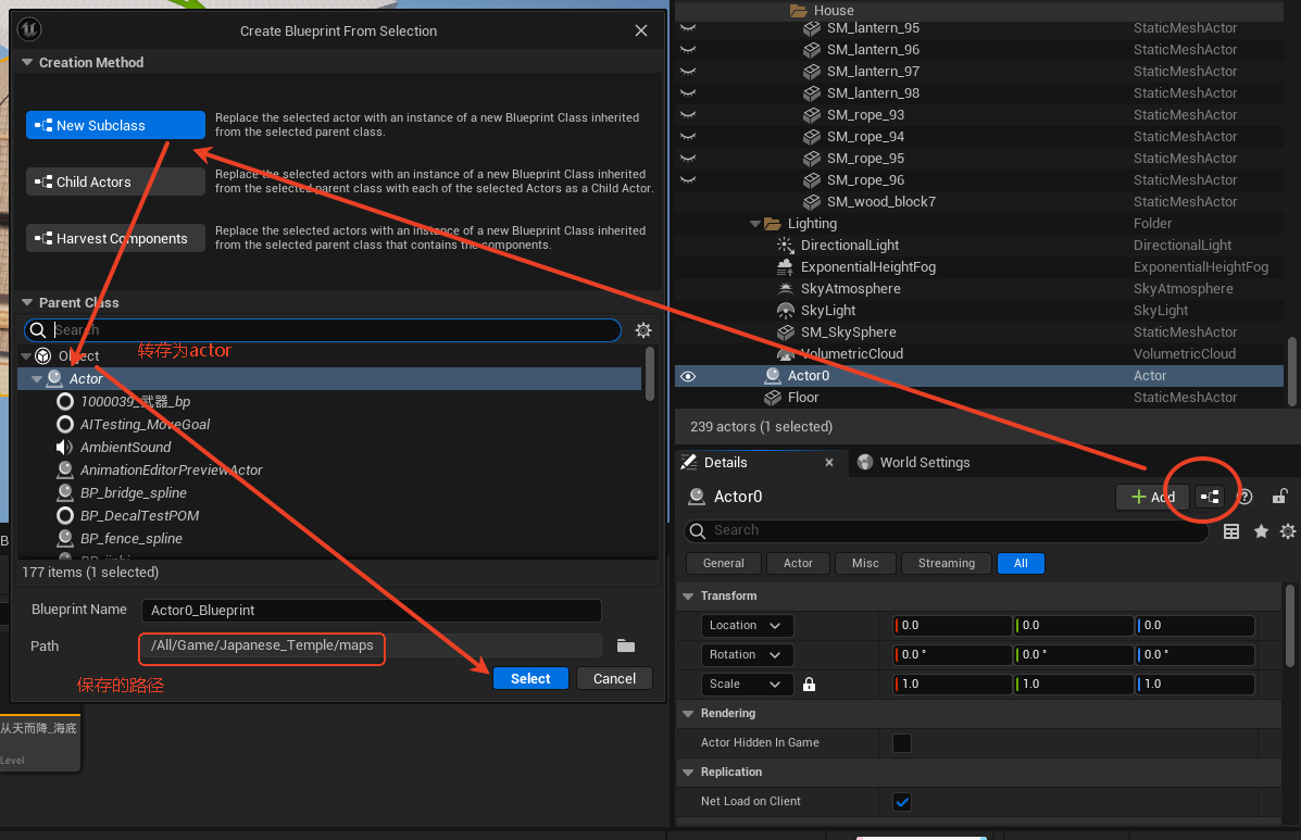 场景中的建筑静态物体转为actor,保持建筑的相对位置。