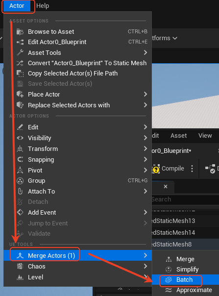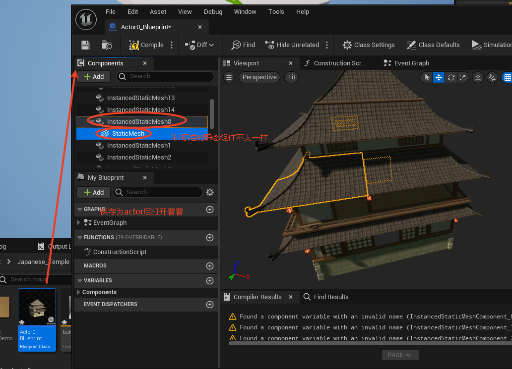 在content里中产生一个新的actor,打开看里面就是放置好的静态物体了。