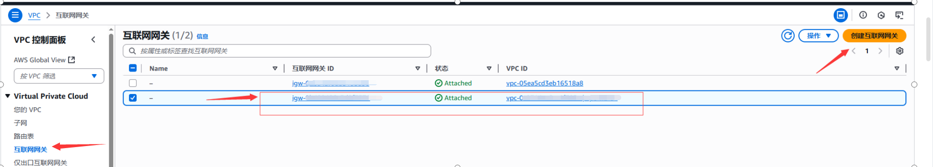 3、在泰国创建互联网网关,然后关联vpc