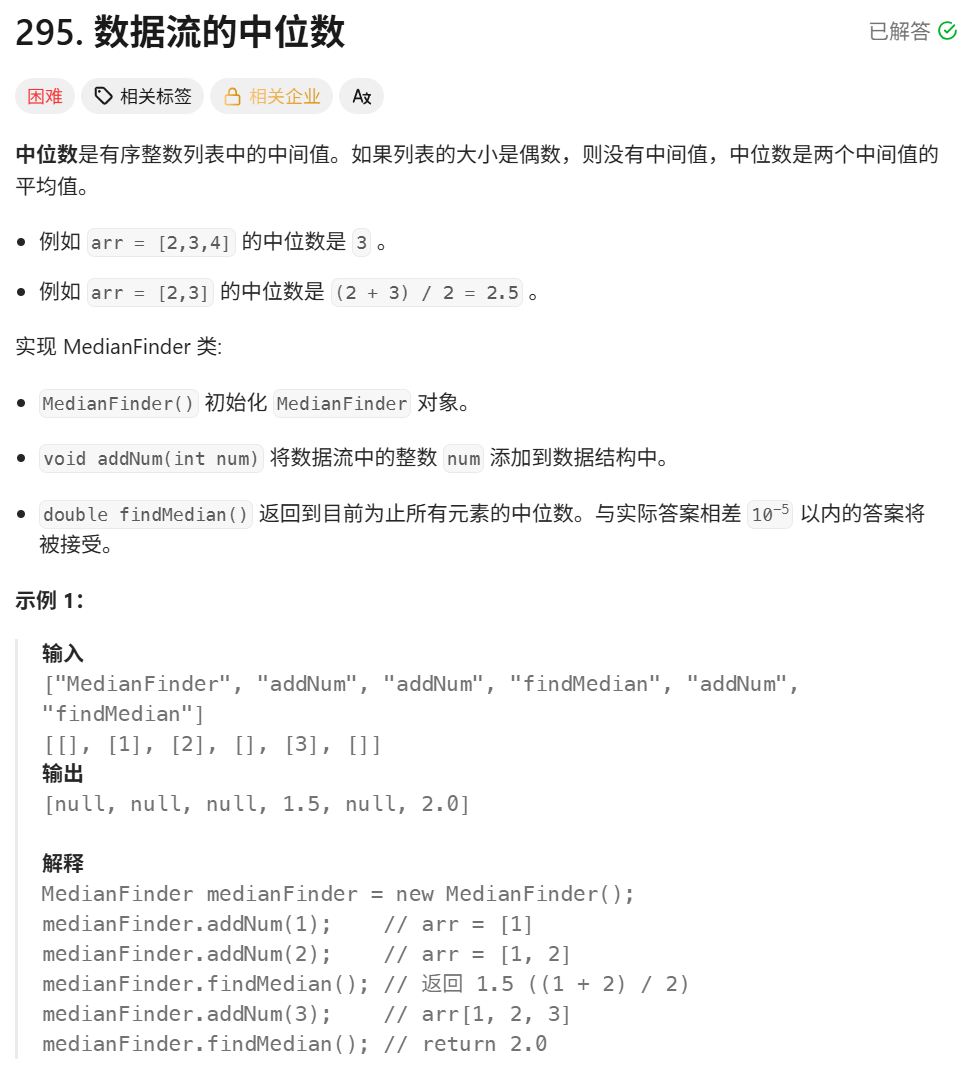 优先级队列(堆)-295.数据流的中位数-力扣(LeetCode)