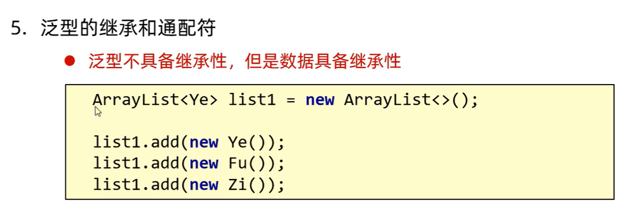 虽然泛型类型本身不具备继承性,但存储在泛型集合中的数据是具备继承性的。当定义一个泛型集合,比如ArrayList<Animal>