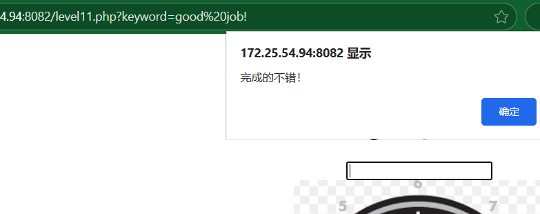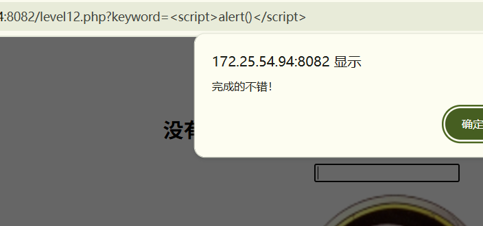 ,也不会弹出系统的 alert,而是执行这里自定义的函数:弹出 confirm ("完成的不错!")跳转到 level12.php?keyword=good job!