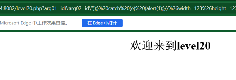 <embed src=xsf01.swf?a=<script>alert()</script> width=100% heigth=100%><h2 align=center>成功后,<a href=level18.php?arg01=a&arg02=b>点我进入下一关</a></h2>