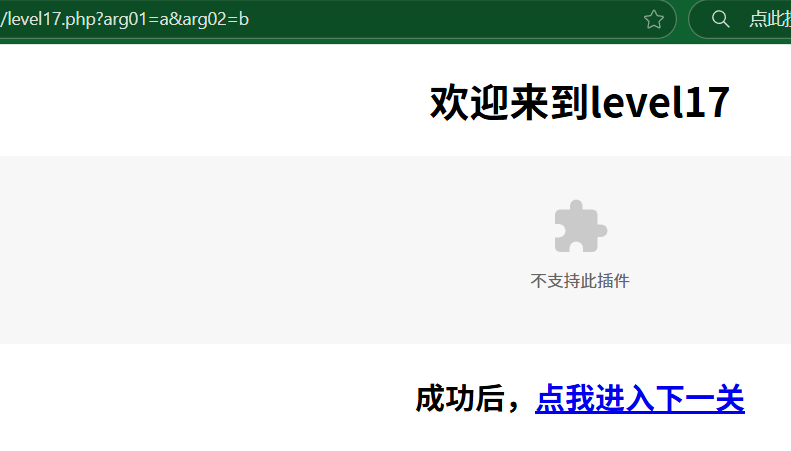 confirm("完成的不错!");window.location.href="level17.php?arg01=a&arg02=b";