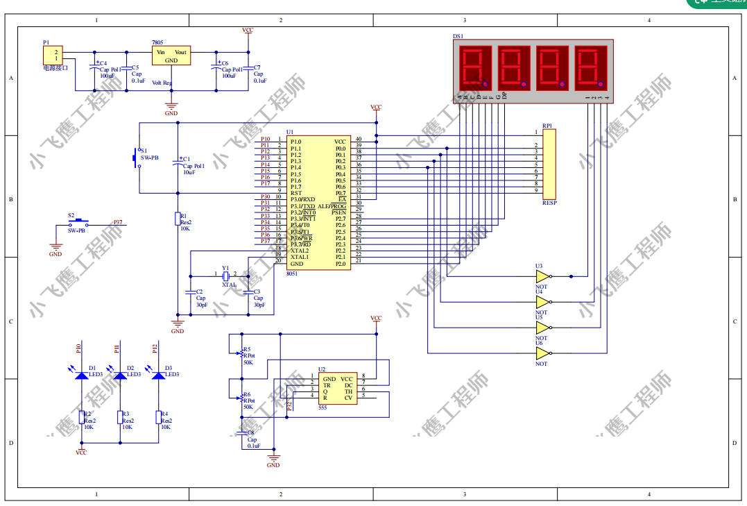全套资料包含:Proteus仿真源文件+keil C语言源程序+AD原理图+流程图+元器件清单+说明书等
