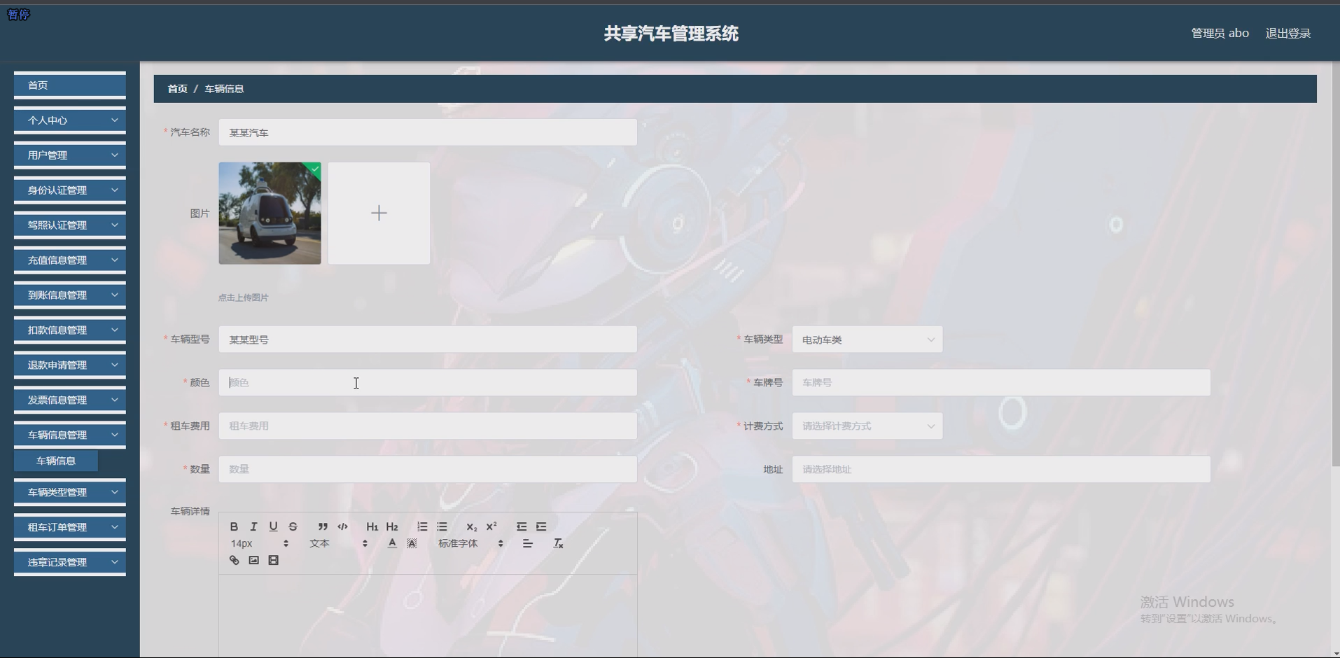 - 助力行业发展:系统的模块化设计可灵活适配不同规模共享汽车企业的需求,为行业提供标准化的管理解决方案,推动共享汽车行业向规范化、智能化方向发展。