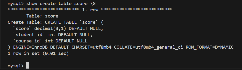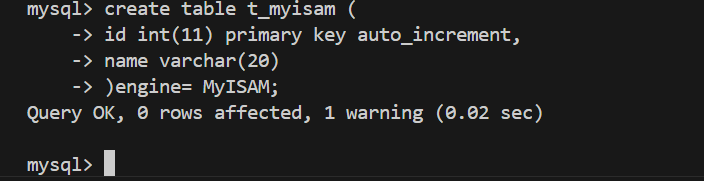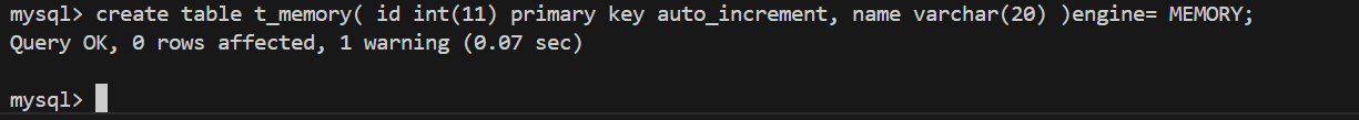 CREATE TABLE t_innodb (id int(11) PRIMARY KEY AUTO_INCREMENT,name varchar(20)
