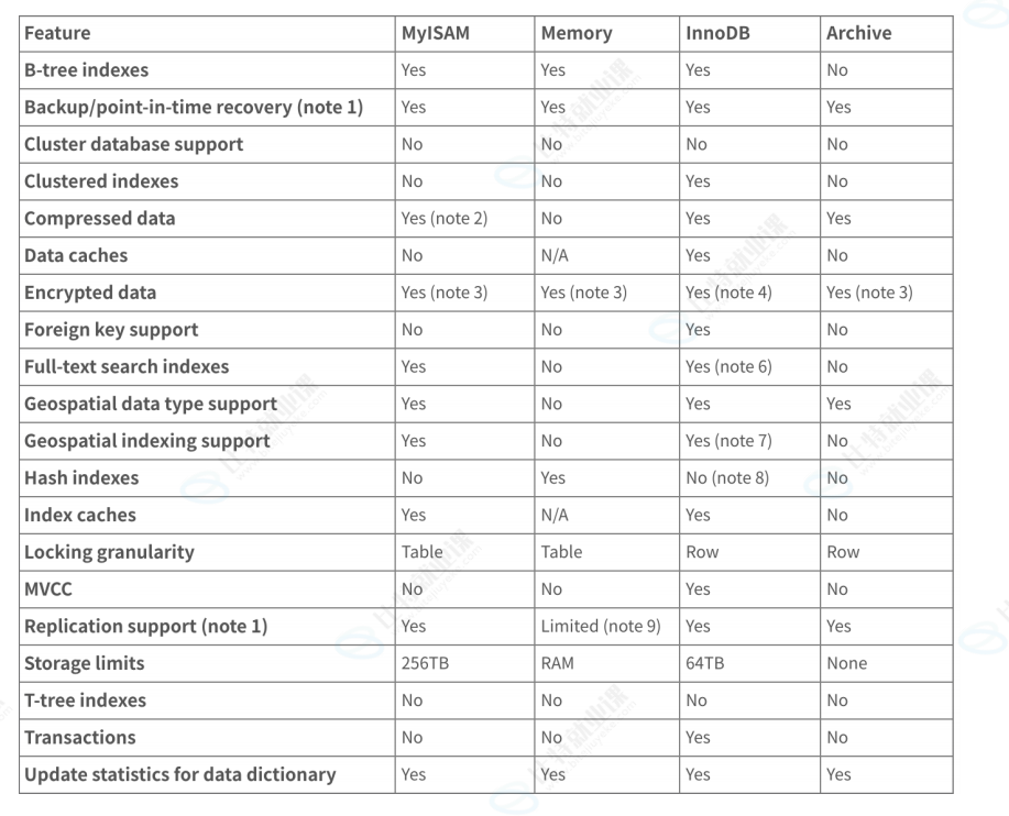 • Cluster:MySQL集群,在MySQL集群专题介绍;