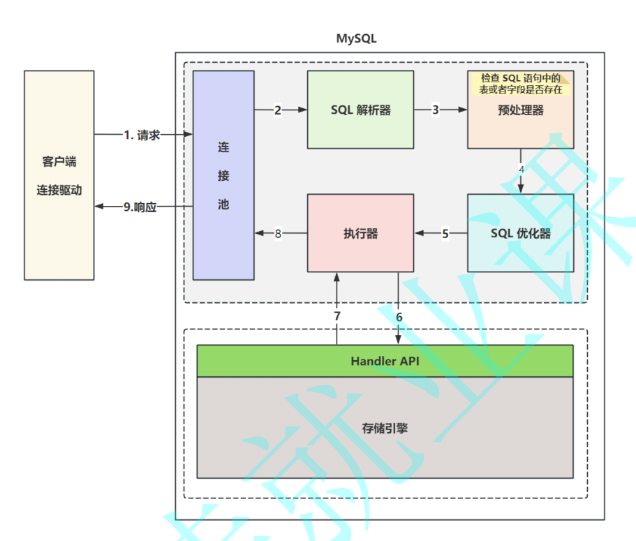 MySQL8.0服务器是由连接池、服务管理⼯具和公共组件、NoSQL接⼝、SQL接⼝、解析器、优化