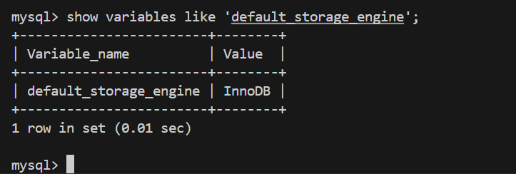 2、如果InnoDB不是默认的存储引擎,可以通过在服务器命令⾏指定选项 --default-storageengine=InnoDB 或者在选项⽂件的 [mysqld] 节点定义 default-storageengine=InnoDB 并重新启动服务器来设置 InnoDB 存储引擎