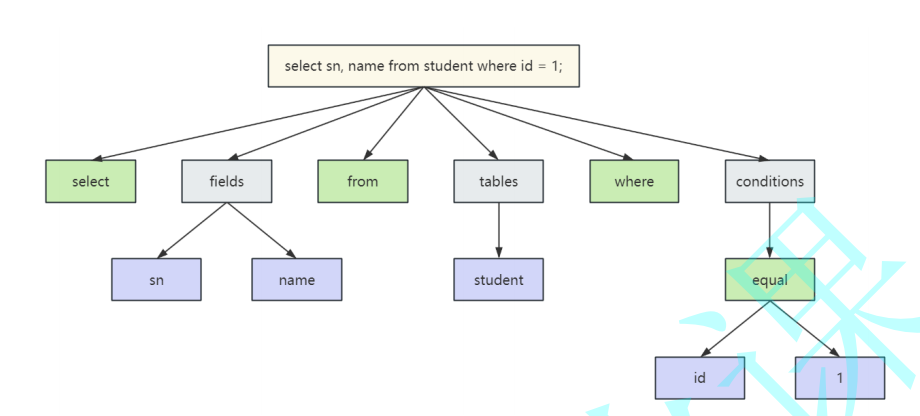 # 例如有如下SQL语句, 对应的解析树⼤致如图所⽰