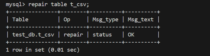 1、CSV 存储引擎⽀持使⽤ CHECK TABLE 和 REPAIR TABLE 语句来检查或修复的 CSV表。