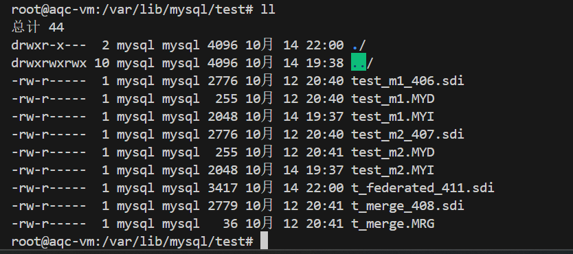 2、创建 MERGE 表时,会在磁盘上创建⼀个 .mrg ⽂件,其中包含了基础MyISAM表的名称。MERGE的表格式存储在MySQL数据字典中; .sdi 为后缀的表信息描述⽂件;