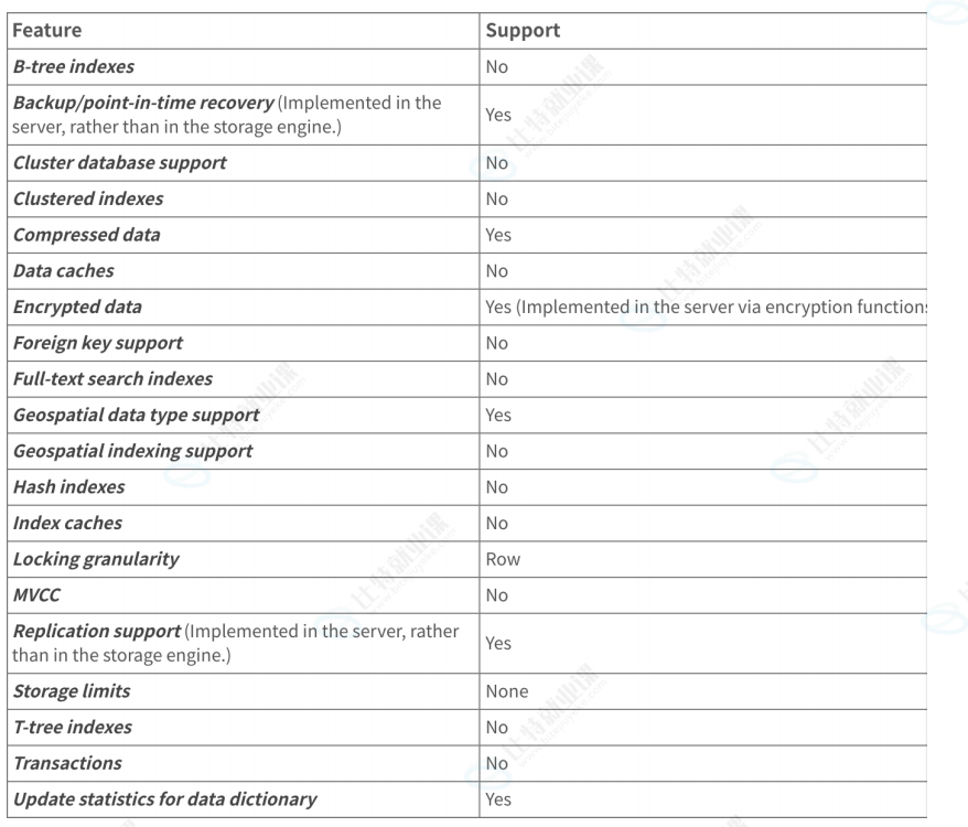 • 本质上是⼀个 "⽆操作"的存储引擎,可⽤于查找与存储引擎本⾝⽆关的性能瓶颈