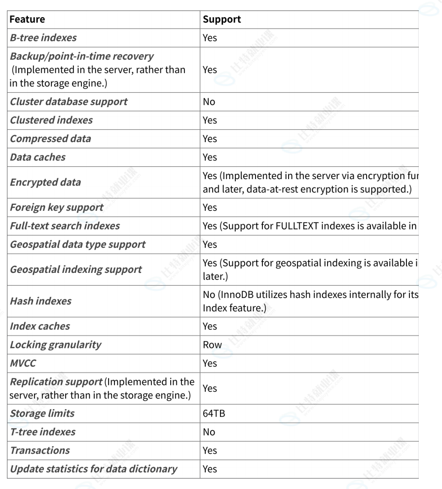 3、⽀持⾏级锁,提⾼了多⽤⼾的读取并发性和性能。事务和锁专题中介绍