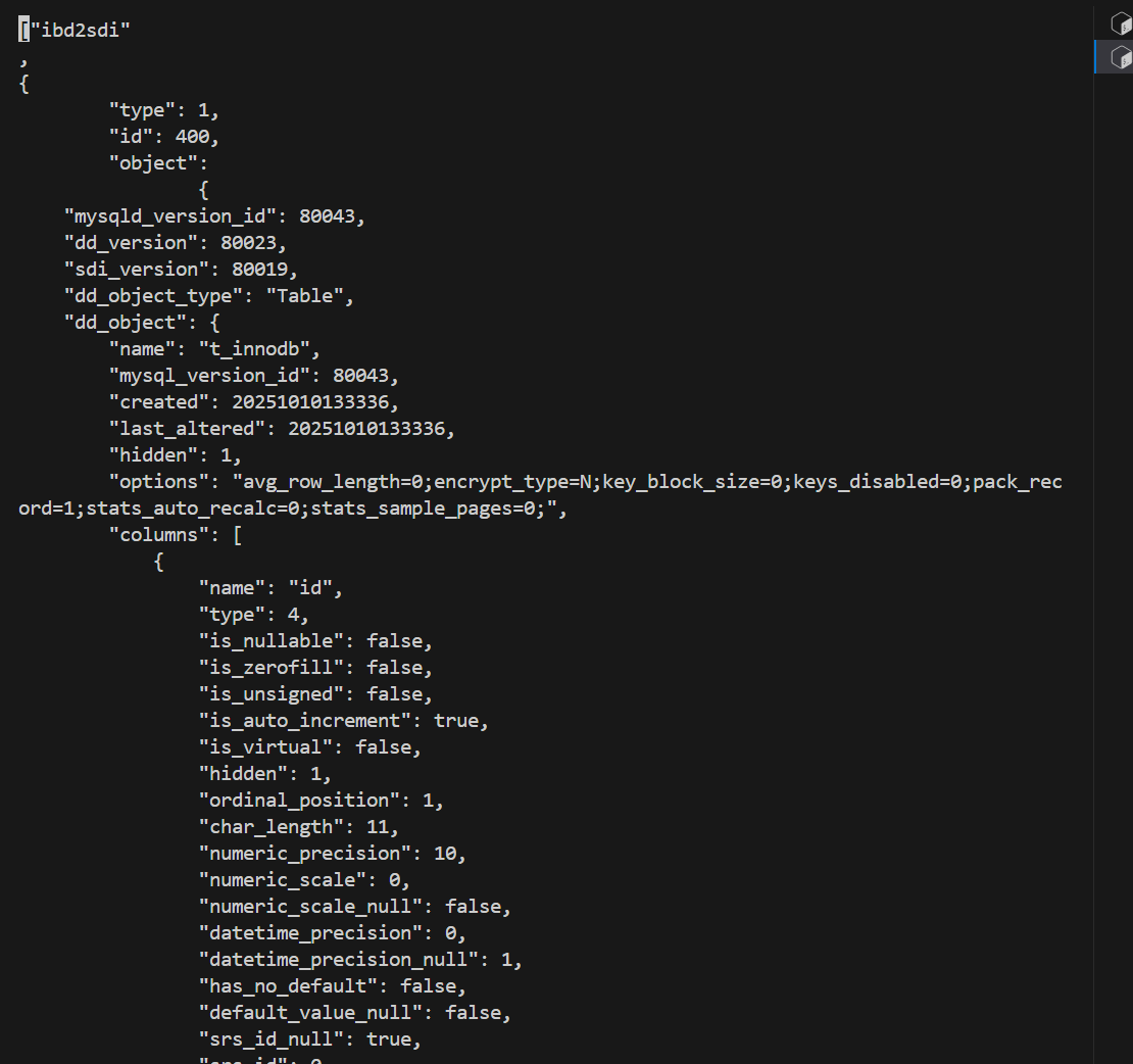 以 .sdi 为后缀的表信息描述⽂件(JSON格式)