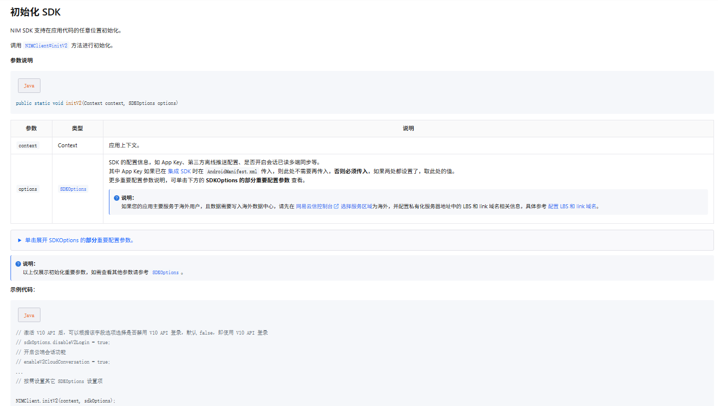 }dependencies {compile fileTree(dir: 'libs', include: '*.jar')// 添加依赖。注意,版本号必须一致。// 基础功能 (必需)implementation "com.netease.nimlib:basesdk:${LATEST_VERSION}"// 聊天室功能implementation "com.netease.nimlib:chatroom:${LATEST_VERSION}"// 厂商推送集成(小米、华为等)implementation "com.netease.nimlib:push:${LATEST_VERSION}"// 超大群功能implementation "com.netease.nimlib:superteam:${LATEST_VERSION}"// 全文检索插件implementation "com.netease.nimlib:lucene:${LATEST_VERSION}"