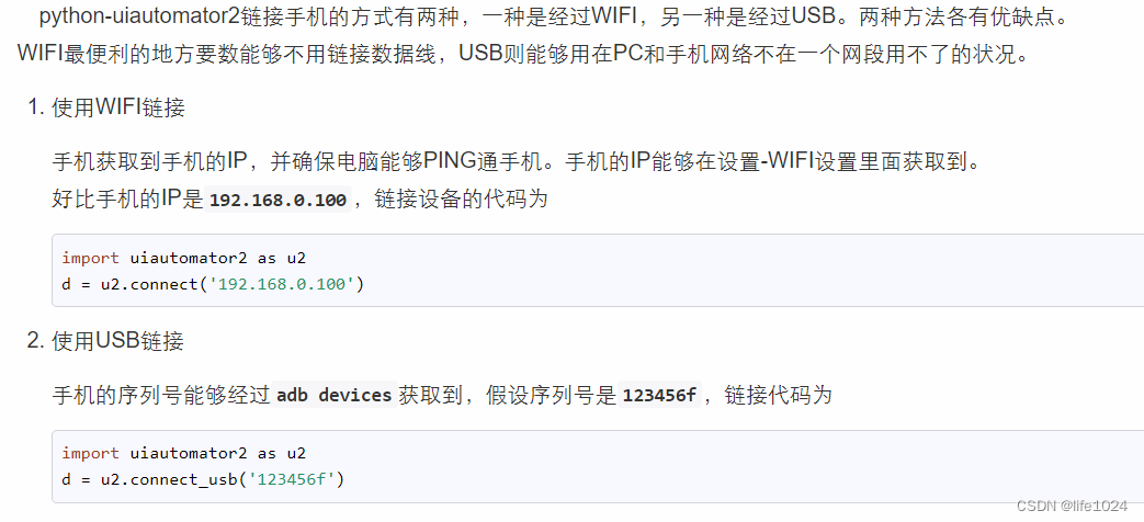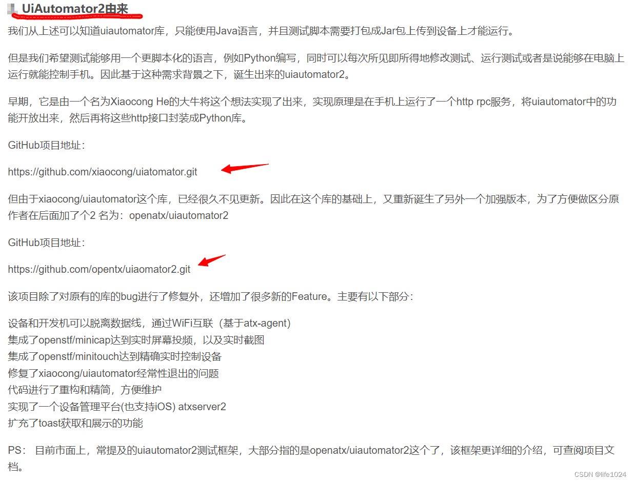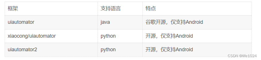 根据发展历程,有如下三种开源框架,目前基本都用uiautomator2,支持usb或者wifi连接。