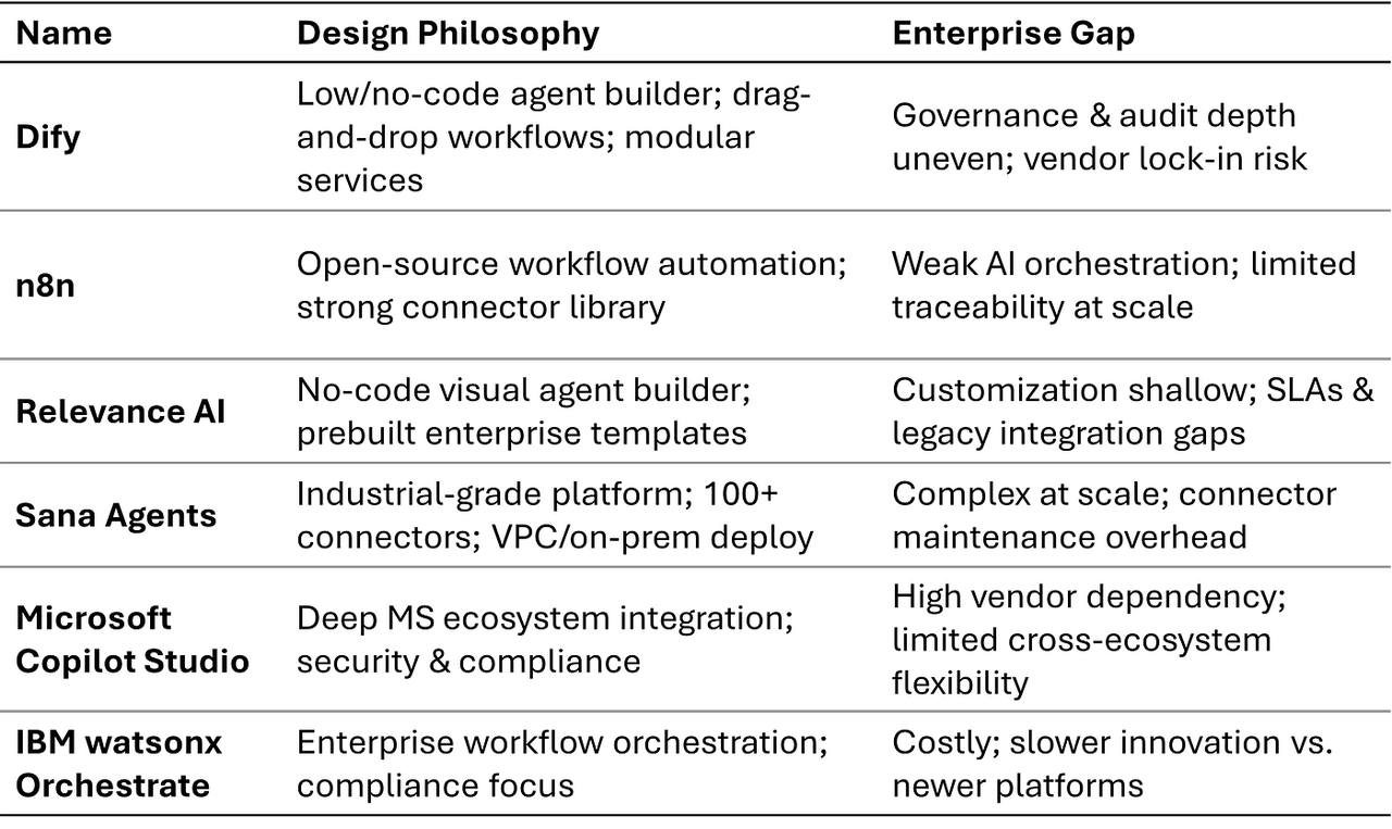这些平台的目标用户是不想编写太多代码的开发者。它们提供拖放式工作流程、预制连接器和企业友好的部署模式。它们的优势在于速度和易用性,尤其对业务团队而言。但代价是在治理、可审计性和复杂编排方面存在不足。对于受监管或大规模的系统,它们往往需要加强。