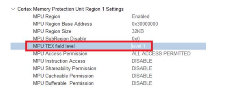 (2) 实现 MPU 对 LWIP 堆栈区的设置(TEX=1,C=0,B=0),其属性为 Normal。