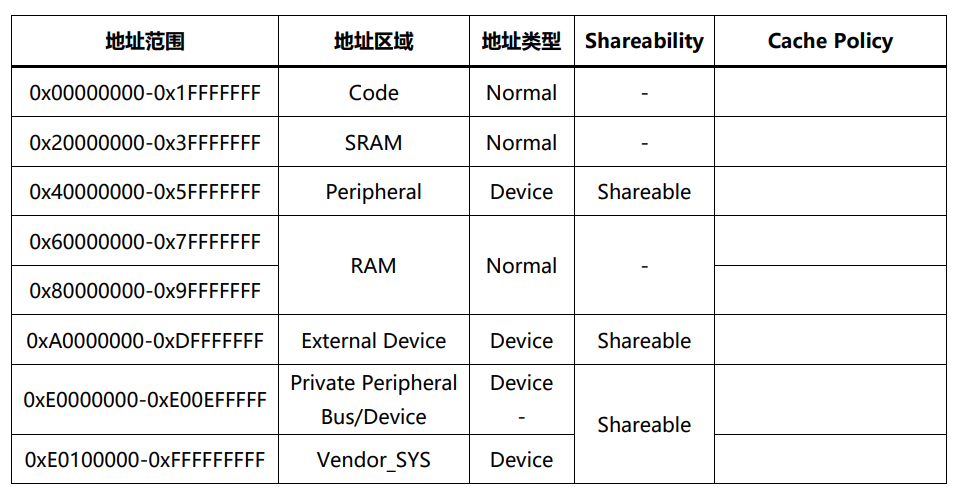 因此,在使用 STM32CubeMX 创建工程时,默认就对 MPU 进行了初步配置,关于 H7 为 什么要对 MPU 进行配置,其配置原理及 MPU 的更详细理解,有兴趣的读者可参考LAT1240和 LAT1448,笔者不再做详细解释,其配置含义如下图所示: