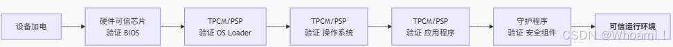 2 | OS Loader验证 | TPCM/PSP (平台安全处理器) | CPU启动后,控制权移交TPCM。PSP获取OS Loader文件并进行可信验证。 | 验证通过后,加载启动OS Loader。 |