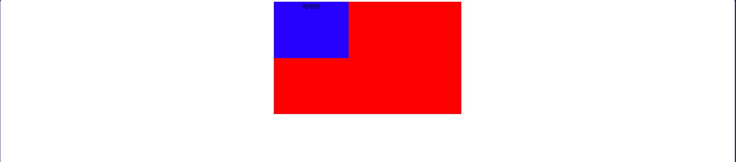<head><meta charset="UTF-8"><meta name="viewport" content="width=device-width, initial-scale=1.0"><title>Document</title><style>.div1 {width: 500px;height: 300px;background-color: red;margin: 0 auto;}.div1 .div2 {width: 200px;height: 150px;background-color: rgb(38, 0, 255);text-align: center;/* margin: 0 auto; */}</style>