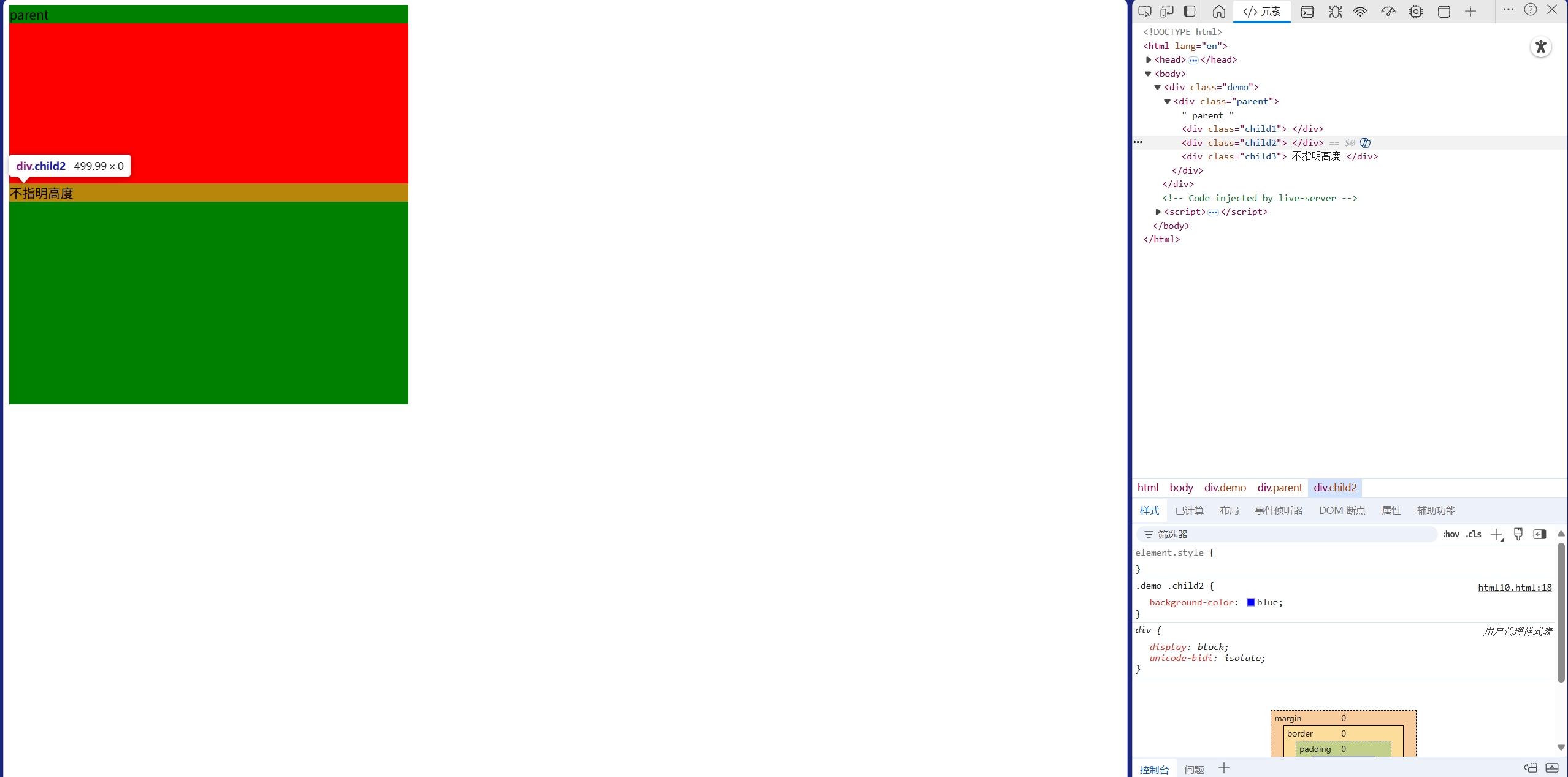 <body><div class="demo"><div class="parent">parent<div class="child1"></div><div class="child2"></div><div class="child3">不指明高度</div></div></div>