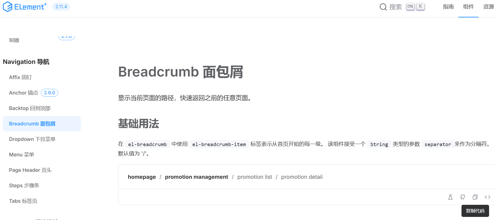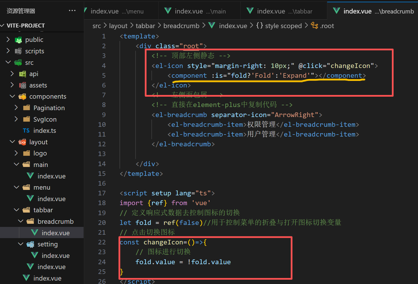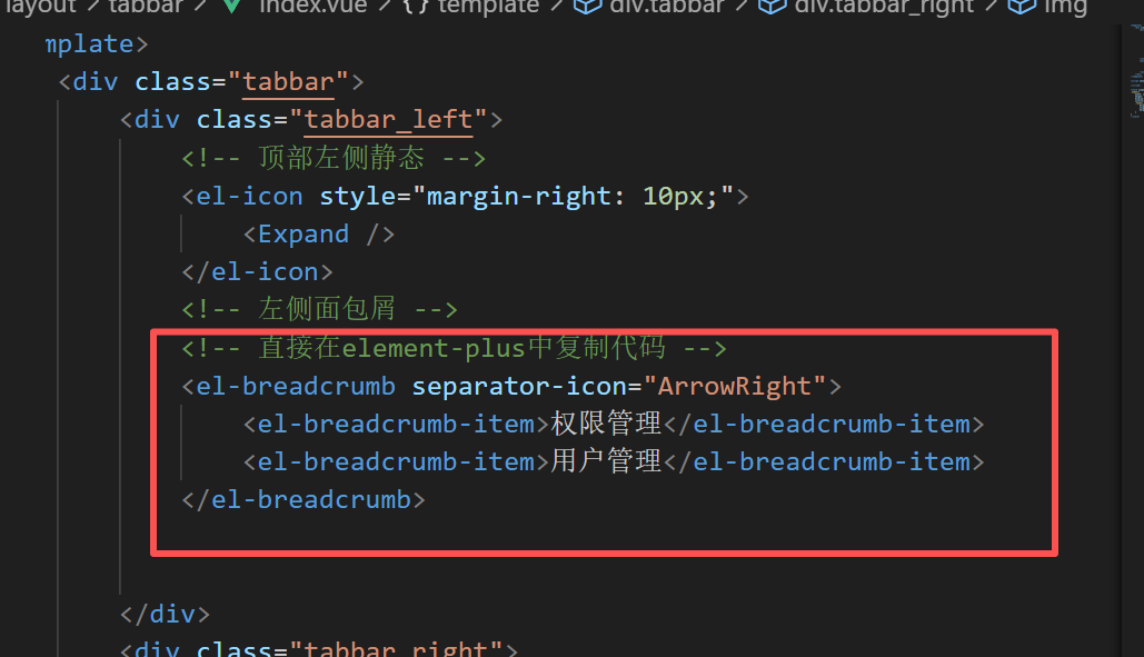 稍微修改一下面包屑组件部分代码