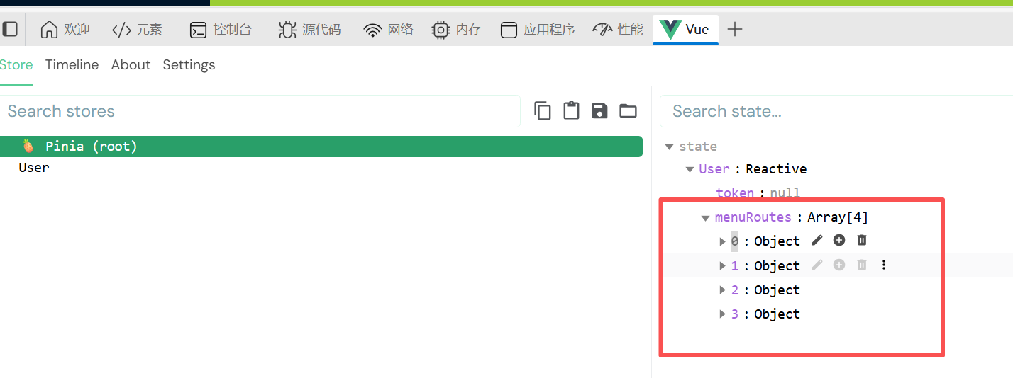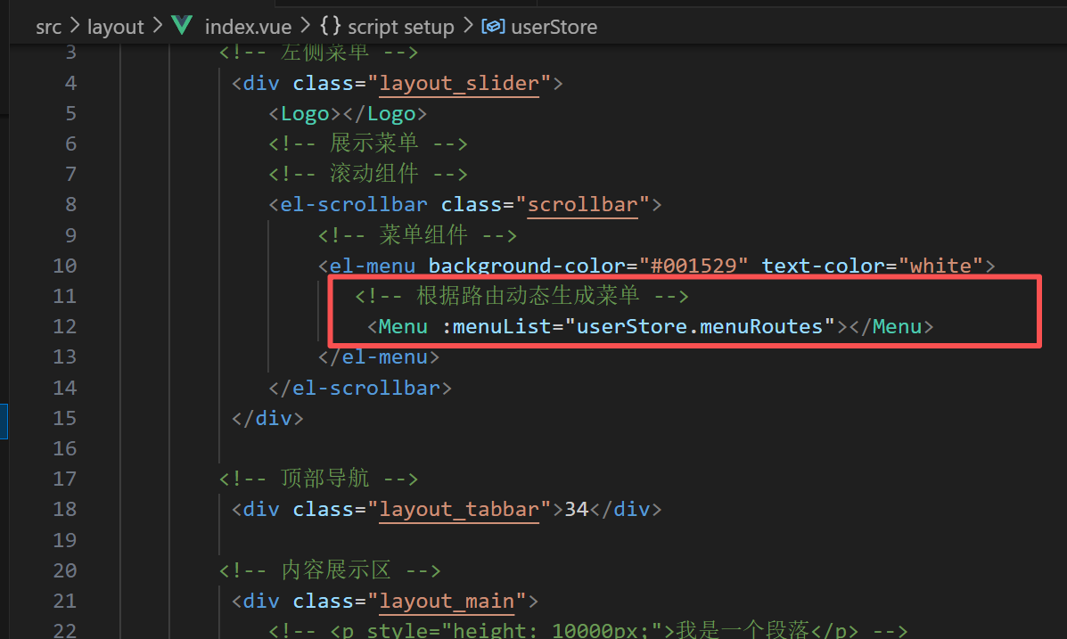 即仓库中已有菜单数组,接下来将这些数组传给menu,动态生成菜单(显示到页面上)