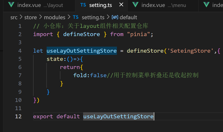 所以新建一个仓库 src/store/modules/setting.ts