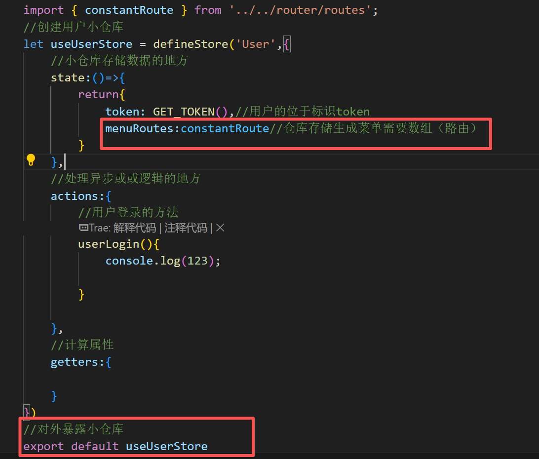 在小仓库src/store/modules/user.ts中