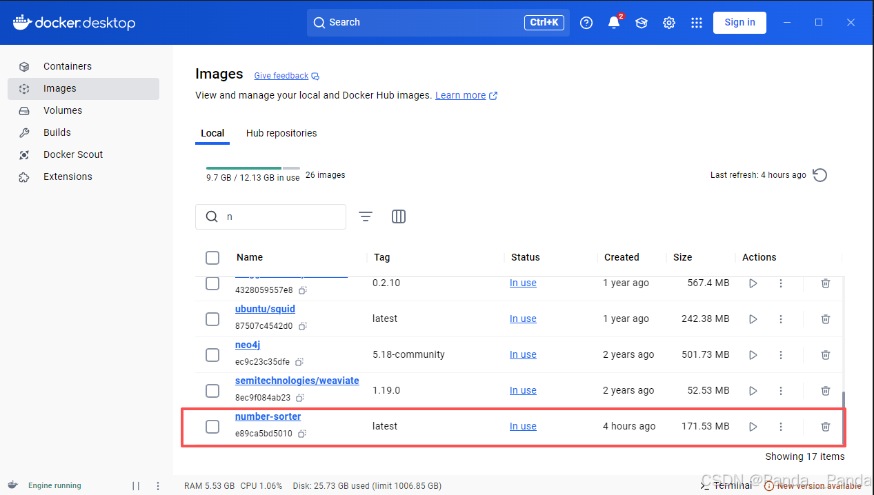 4.打包好的镜像会出现在 docker中,我们也可以找到我们创建好的镜像名称