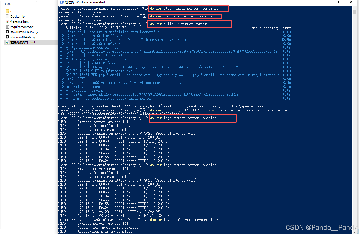 最后总结一句话,如果我们想停掉正在运行的容器的时候,我们执行docker stop number-sorter-container之后还得删除容器再执行docker rm number-sorter-container,这里解释一下为什么会这样做,因为在Docker的容器命名机制中,每个容器必须有唯一的名称,Docker不允许使用相同的名称创建新容器,即使容器已停止,名称仍然被占用,当前两步都执行完之后后面才可以执行docker run -d -p 8021:8021 --name number-sorter-container number-sorter 服务才会重启。