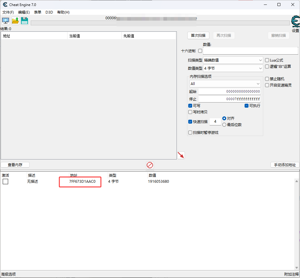 首先打开CE,使用上一个内容找到的UWorld的偏移(4BDAAC0),找到它的地址(公式:游戏的exe文件名+0x4BDAAC0),如下图红框UWorld的地址