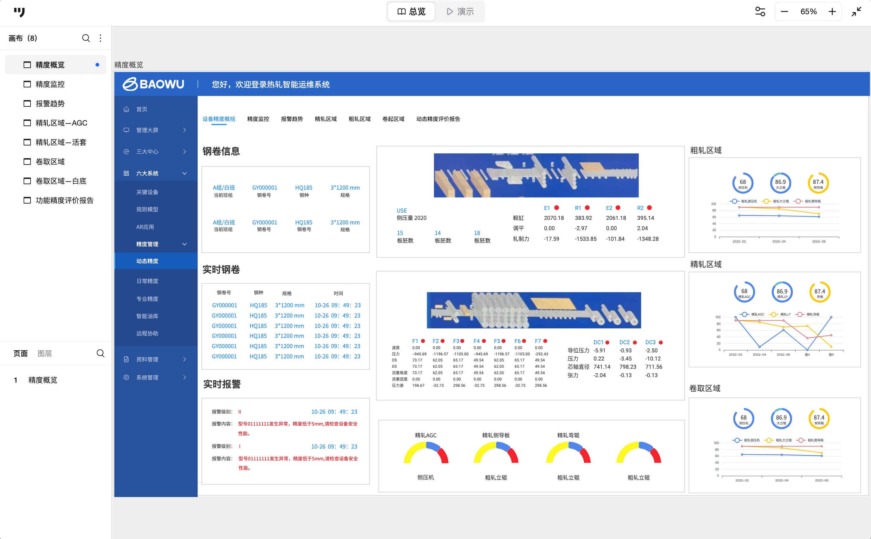 仪表盘是整个设备管理系统运行的数据中心,承担运行监控与任务概览的核心功能。页面以多个信息卡片模块组成,布局合理,信息聚合度高。