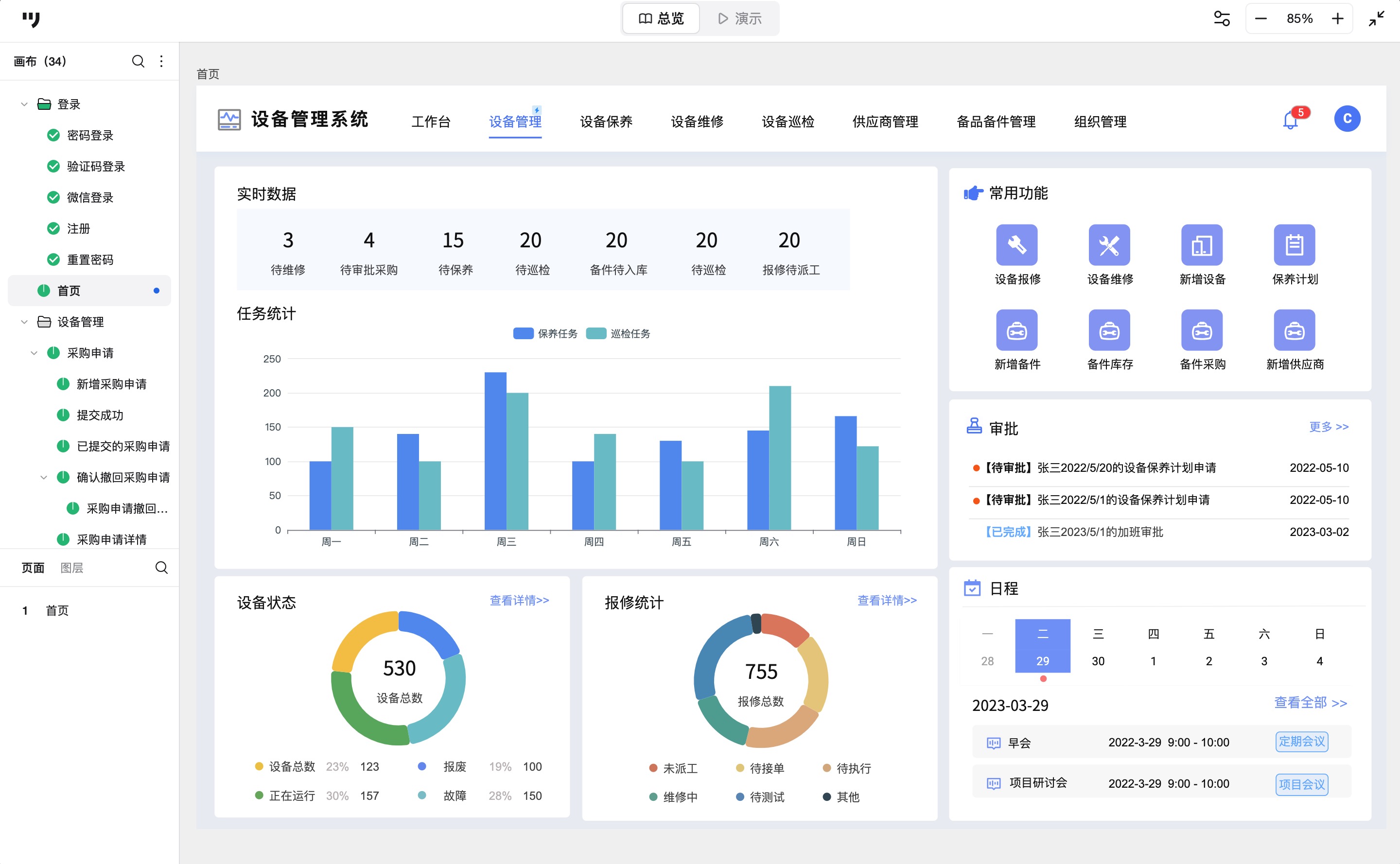 设备管理系统在原型设计环节也是一大难点,本文将基于墨刀素材广场的一个设备管理系统原型实战案例,拆解其核心页面的设计思路,覆盖PC端后台管理系统与APP/PDA端设备界面,帮助产品经理理清设备管理类系统的原型设计逻辑与页面框架。