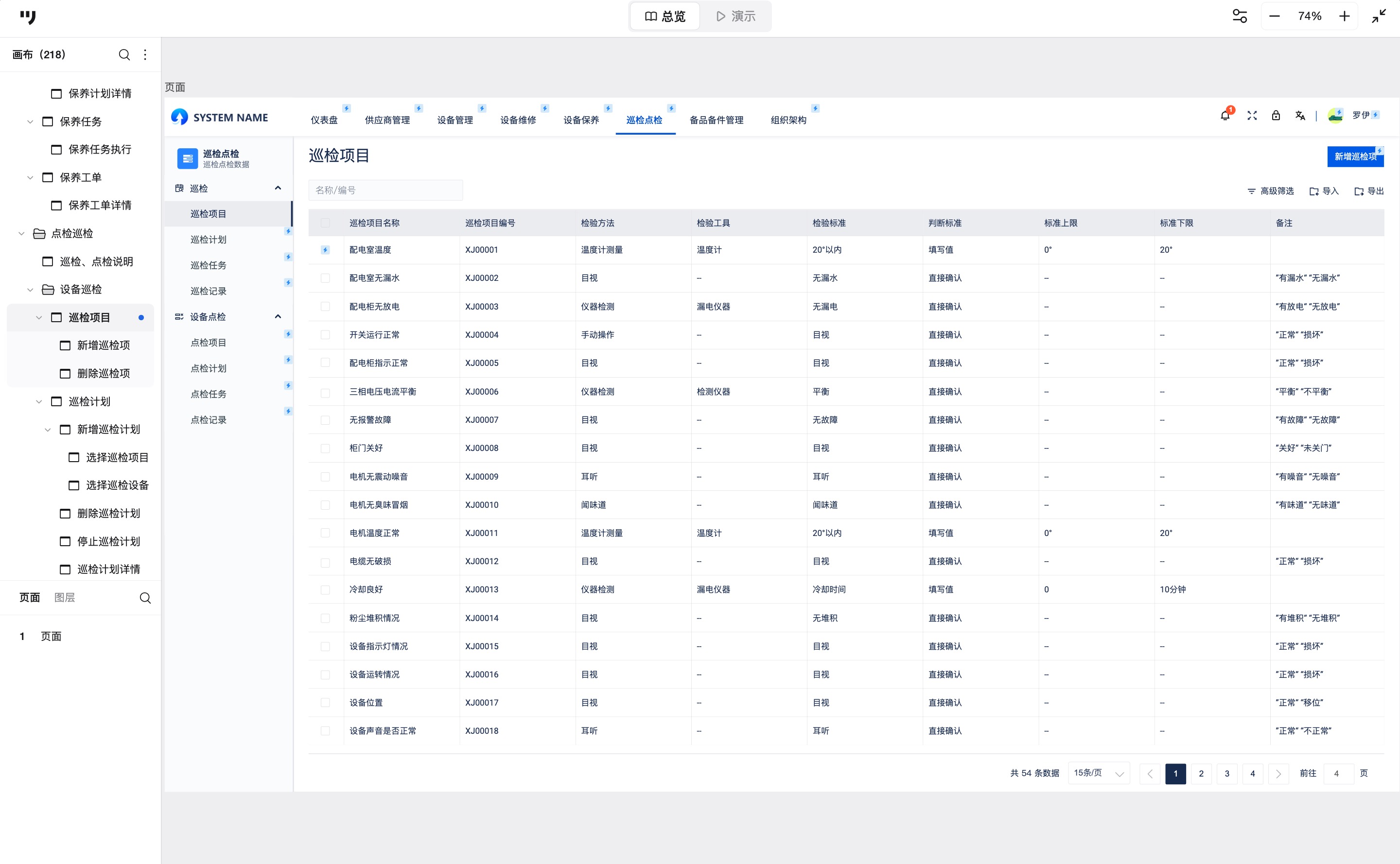 巡检与点检是保障设备安全与稳定运行的重要手段。两者虽在周期、标准与执行方式上存在差异,但后台页面设计保持一致,方便操作与统一培训。