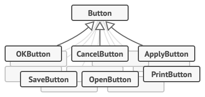 虽然所有这些按钮看起来相似,但它们各自有不同的功能。你会把这些按钮的各种点击处理程序的代码放在哪里呢?最简单的解决方案是为按钮使用的每个地方创建大量的子类。这些子类将包含按钮点击时需要执行的代码。