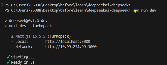 在 PowerShell 终端中启动 Next.js 项目开发服务器