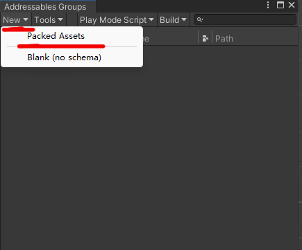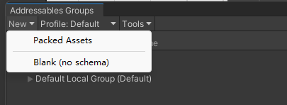 New菜单下两个功能: Packed Assets 与 Blank(no schema)