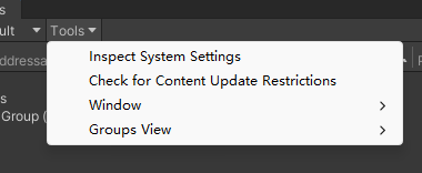 Inspect System Settings: 在 Inspector 窗口中打开 Addressables 的全局配置文件 AddressableAssetSettings