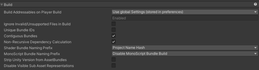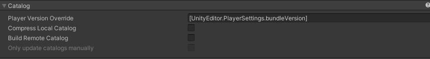 Player Version Override 强制为 Catalog 指定一个版本号。如果留空,Addressables 会自动使用项目的 Player Settings