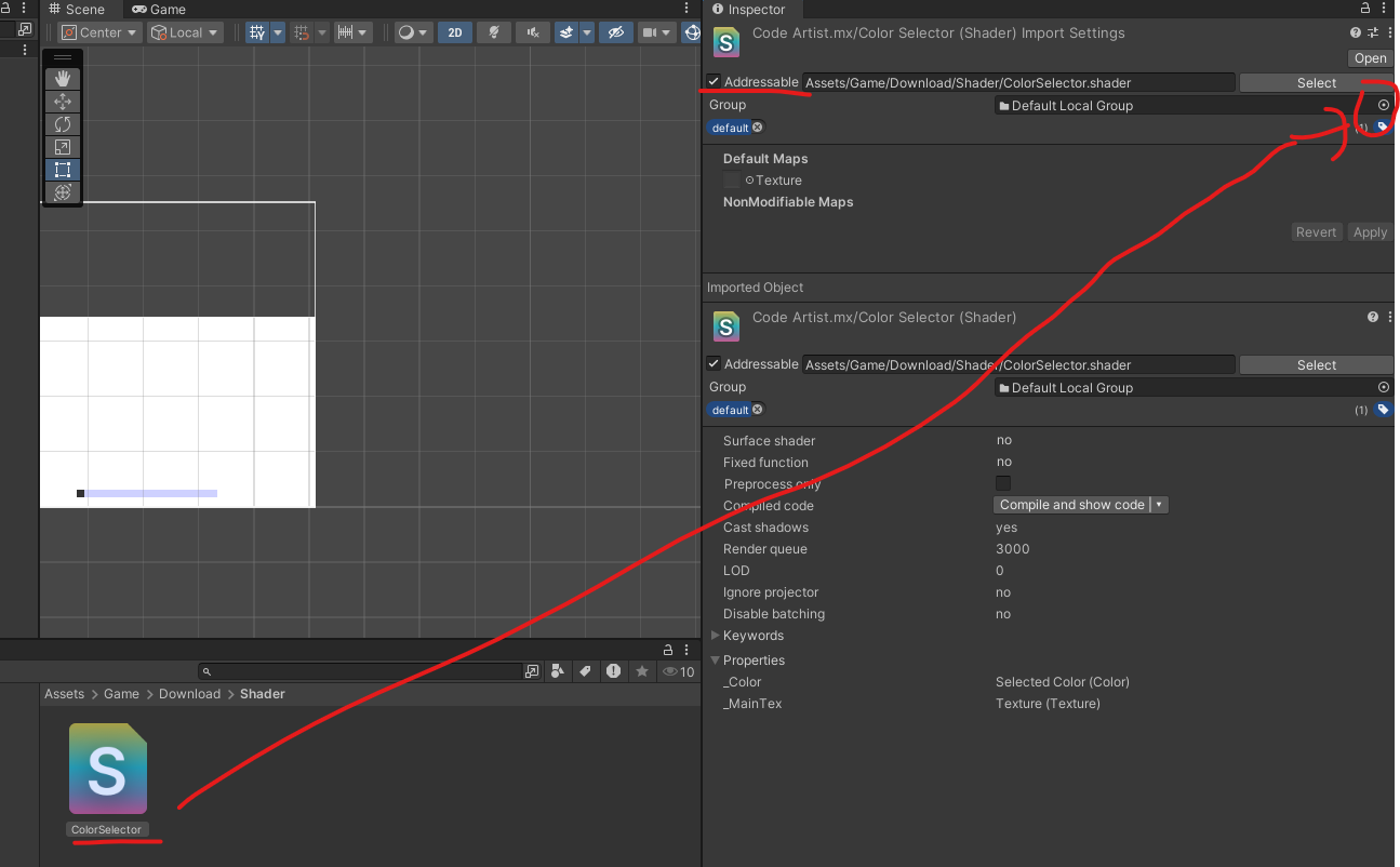 方式1:我们直接选择某个资源,在属性面板选中addressable, 设置其分组: