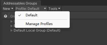 Manage Profiles: 打开addressable配置面板,这里我们自己创建新的配置。