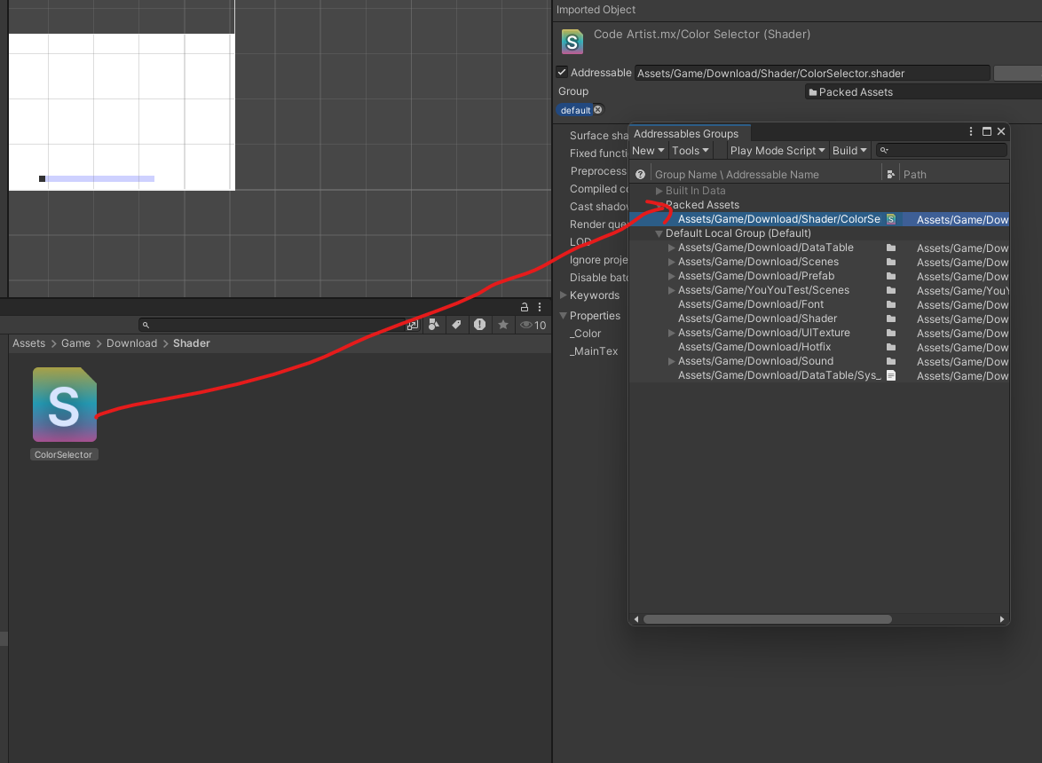 AA(Addressables): 你只需要在编辑器中将资源标记为 "Addressable",并给它一个唯一的地址(Address)。构建时,Addressables 会自动分析所有标记的资源,处理它们的依赖关系,并构建出优化的资源包和目录文件。整个过程是声明式的,你告诉引擎 “这个东西是可寻址的”,引擎来处理后续所有复杂的打包逻辑。