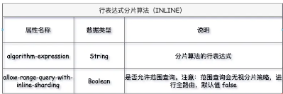 表达式在算法属性内,直接书写分片逻辑,省却了配置和代码开发,只支持SQL语句中的 = 和 IN 的分片操作,只支持单分片键 。